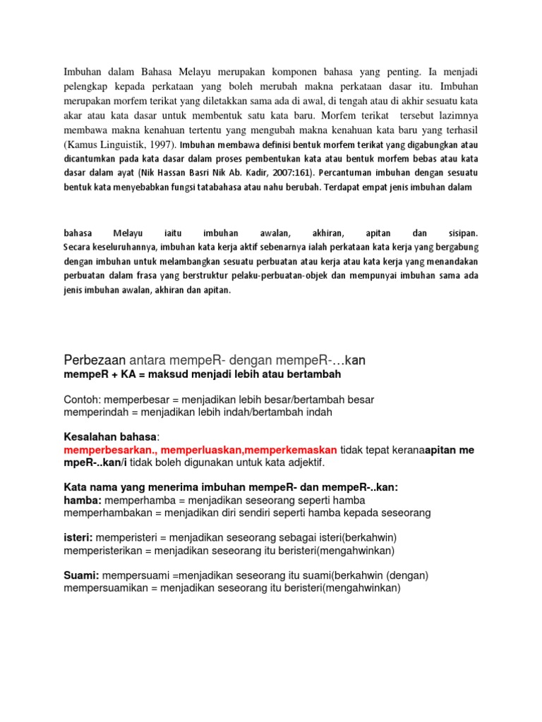 Imbuhan Dalam Bahasa Melayu Merupakan Komponen Bahasa Yang Penting Pdf