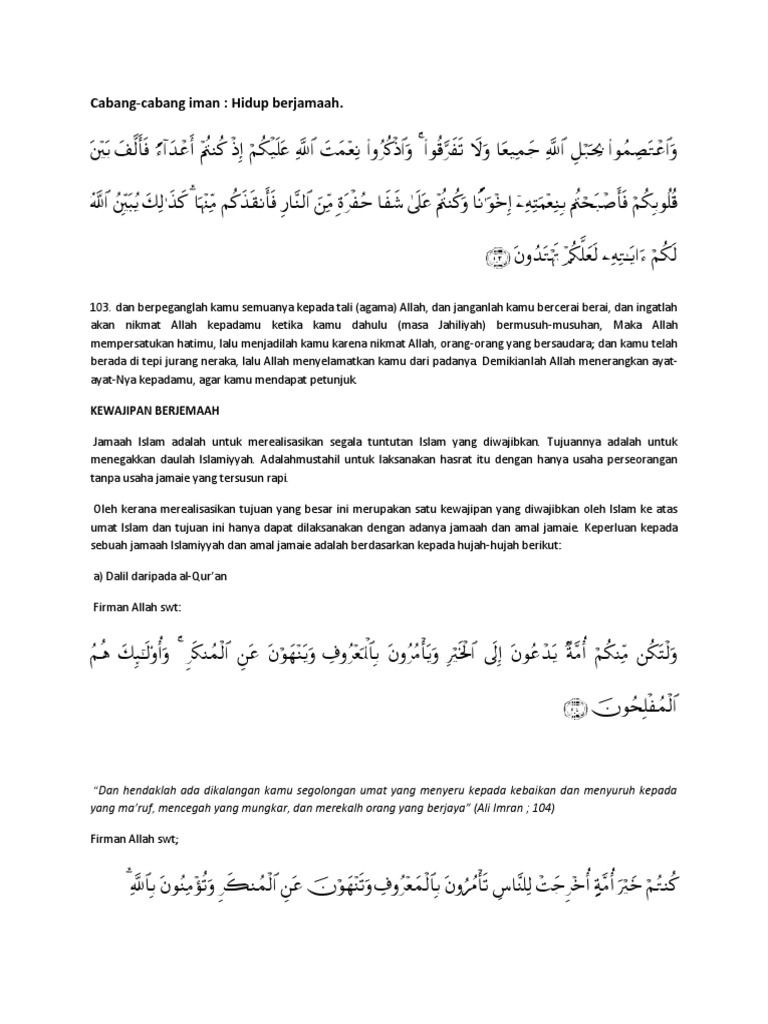 Surah Ali Imran Ayat 103 Docx Surah Ali Imran Ayat 103 Maksud Dan Berpeganglah Kamu Semuanya Kepada Tali Agama Allah Dan Janganlah Kamu Course Hero